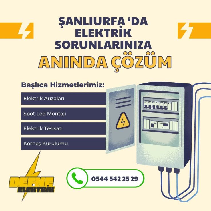 Elektrik arızaları genellikle beklenmedik zamanlarda meydana gelir. Bu nedenle, Şanlıurfa'da acil elektrikçi, gece elektrikçi, nöbetçi elektrikçi, en yakın elektrikçi olarak günün her saatinde hizmet sunuyoruz. Gece saatlerinde veya hafta sonlarında dahi bir telefon uzağınızdayız.